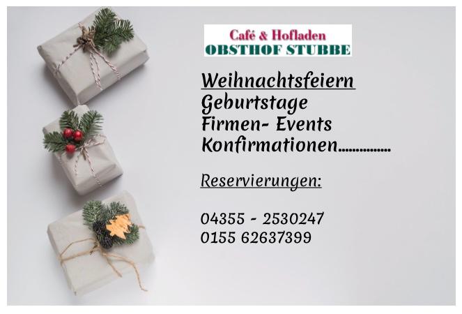 Weihnachtsfeiern, Geburtstage, Firmen-Events, Konfirmationen? Reservierungen: 04355 – 25 30 247 oder 0155 – 62 63 7399